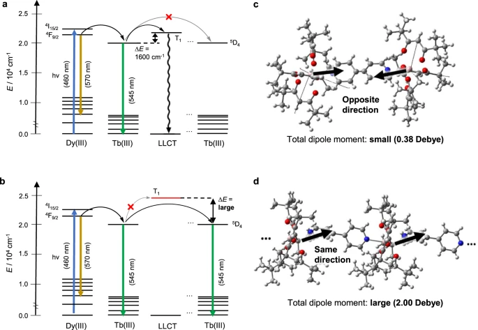 使用Gaussian软件进行几何优化,并基于密度泛函理论计算Dy(III)-Tb(III)双核配合物和Dy(III)-Tb(III)配位聚合物中激发态的能量。