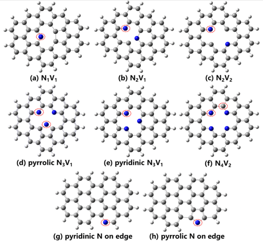 使用Gaussian软件研究了各化合物的结构、稳定性及N-DNCs8种代表性配置的10个潜在活性位点上O3活化的详细反应途径。