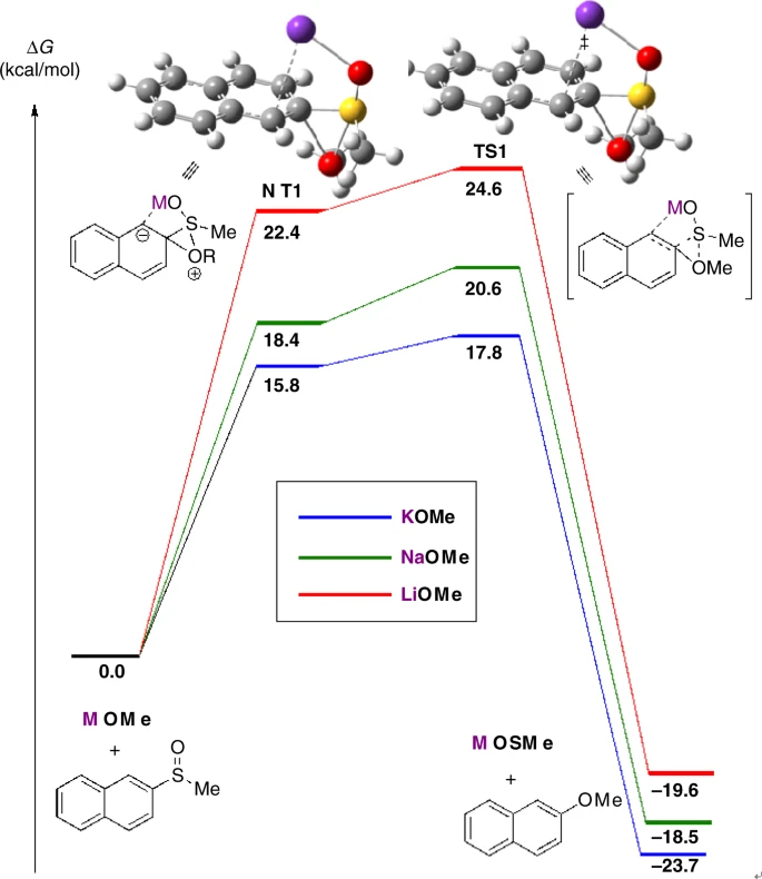 使用Gaussian软件进行DFT机理计算,研究表明反应是通过烷氧基与亚砜的初始加成反应进行的。这种加合物促进了氧化烷与芳香环的进一步分子内加成,芳香系统上的电荷由附近的钾阳离子稳定。