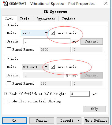 █ 仔细观察可以发现,默认红外光谱图坐标与常用实验红外光谱坐标相反,所以在IR谱图上点击右键中的Property将坐标反转,得到下图。