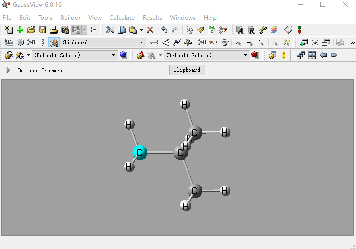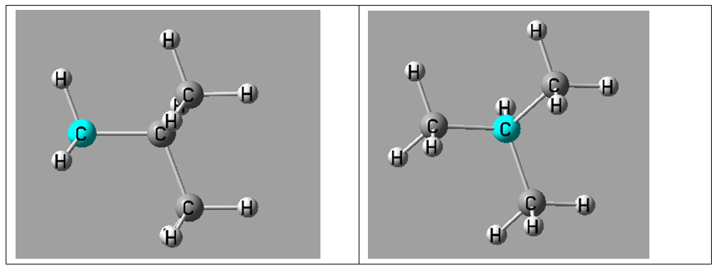 █ 从上图可以看出复制的叔丁烷结构中的高亮原子为伯碳,然后可以通过鼠标左键点击不同位置的碳原子,调整高亮原子位置,如下图: