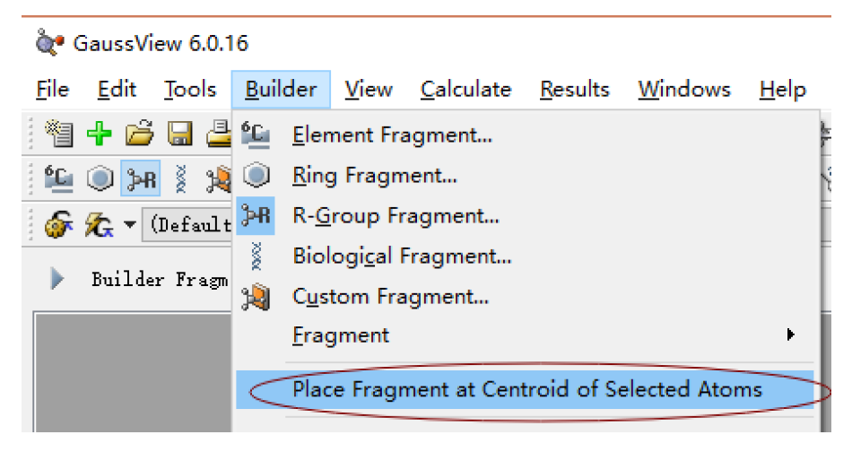 █ 在GaussView 6中有一个功能就是实现在质心添加原子或分子。在如下位置: