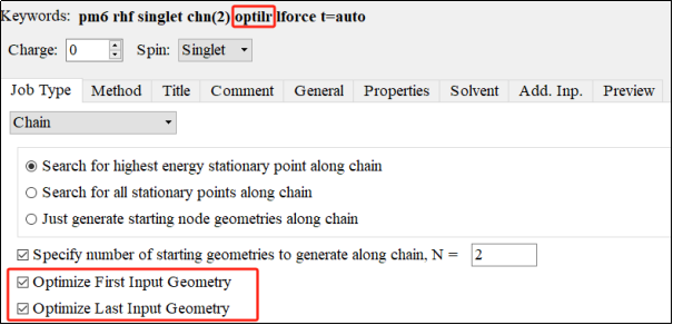 此外,chn(N)的意义为在反应物和产物之间插入N个构型(默认值为6),因此N越大,理论上来讲更容易获得精确的“初始过渡态”。