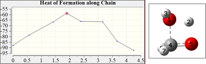 对于前面的TS和STQN方法,都有各自的优缺点。此处介绍一种不需要过渡依赖经验的组合方法。本方法借助于AMPAC程序中寻找过渡态的Chain方法,先使用半经验方法得到一个过渡态的初始结构,然后在Gaussian软件中使用DFT方法对此“过渡态”结构进行优化。
