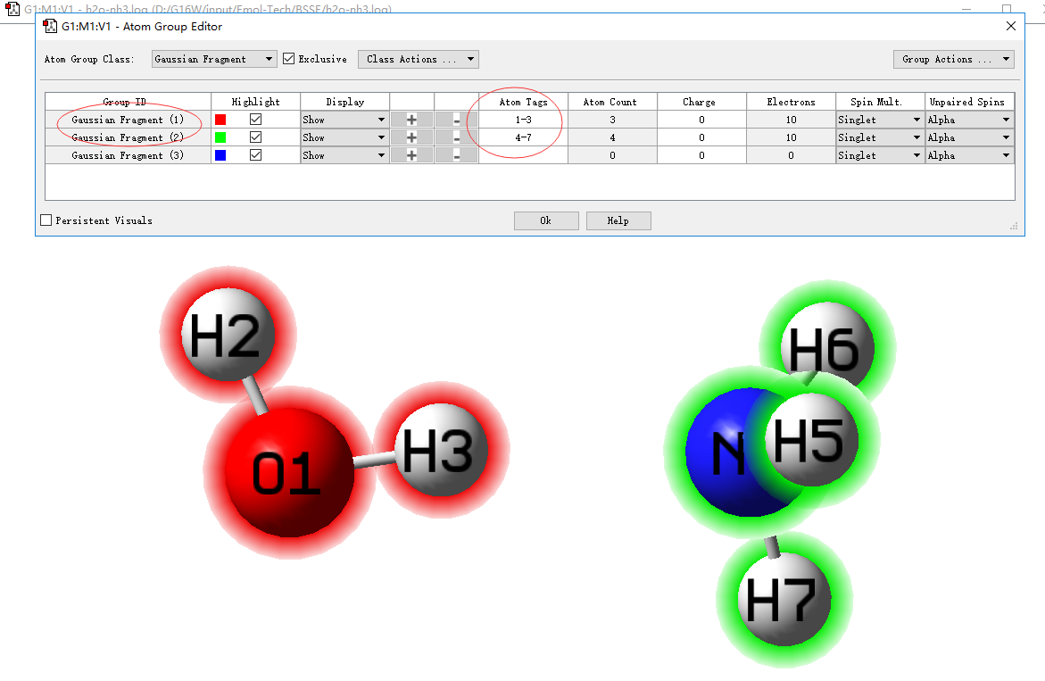 █使用GaussView 6 中的Atom Groups功能将复合物分成两个碎片(Fragments)