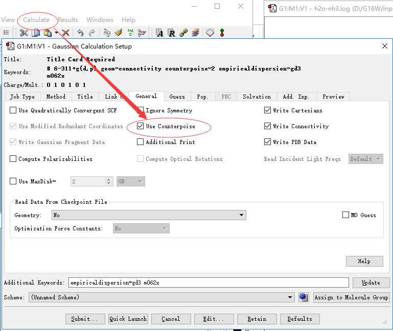 █保存好分子碎片之后,再打开Calculate面板,选中Use Counterpoise.