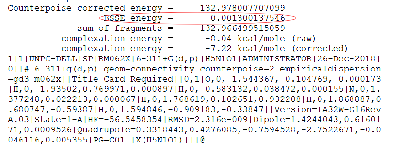 █计算完成后打开log文件,在log文件最后可获得BSSE校正能