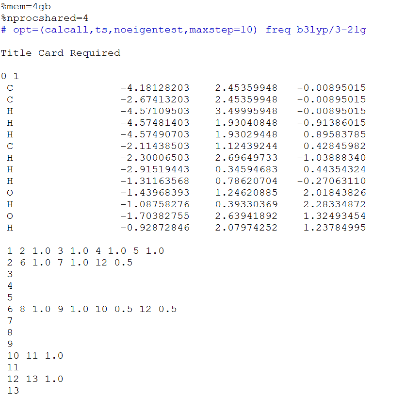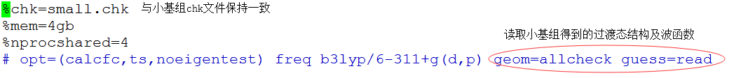 █ 在小基组得到的结构基础上,此时要修改输入文件。如图: