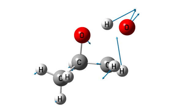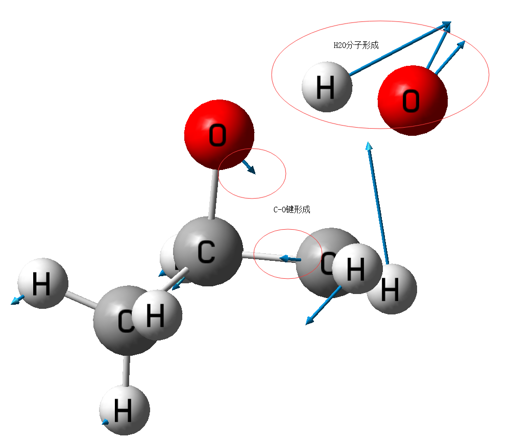 █ 得到小基组下过渡态结构及虚频的振动方向为: