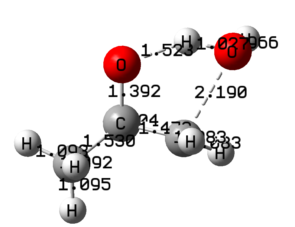 █ 从而得到大基组下过渡态最终结构为(GaussView 6能够显示键长):